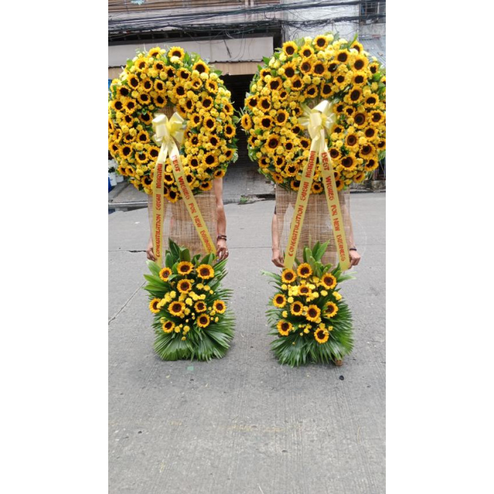 Sunflower,yellow mums with free cutting ribbon