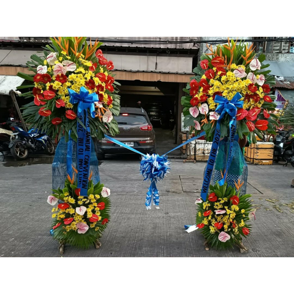 Red and pink anthurium,yellow radus,red gerbera with free cutting ribbong